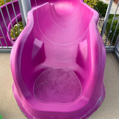 A complete transformation including new gel coat, exterior paint, and slide tower coating. Totally transforming the old appearance. This location is at a park in the middle of town and surely grabbed everyone's attention after our restoration process.